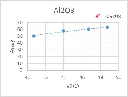 我們可以通過上圖發(fā)現(xiàn),Vanta Core (V2CA) 檢測(cè)結(jié)果與滴定法的化驗(yàn)結(jié)果之間呈現(xiàn)了良好的線性,也印證了X射線熒光分析儀檢測(cè)的可靠性。在進(jìn)行簡(jiǎn)單的校準(zhǔn)后,可以使設(shè)備顯示理想的數(shù)值。