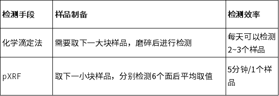 表:XRF和化學(xué)滴定法對(duì)于樣品制備的要求