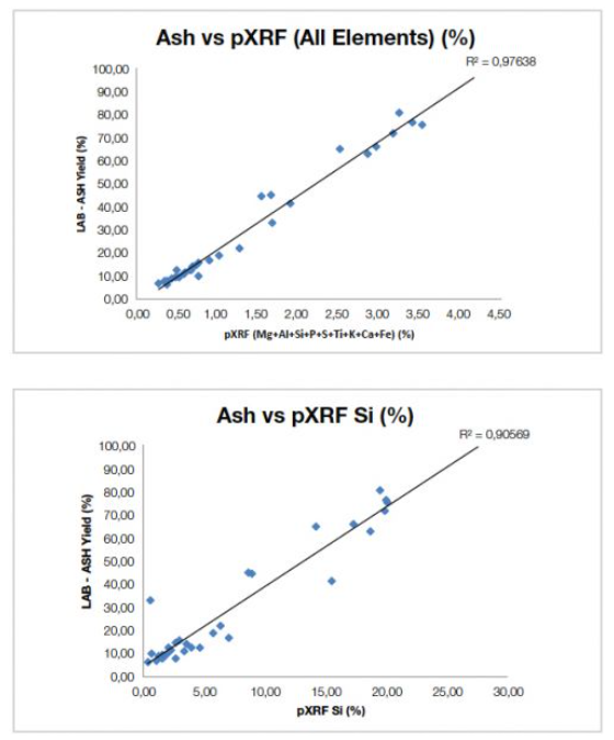 手持式XRF技術(shù)可以測量關(guān)鍵輕元素:硫(S)、硅(Si)和鋁(Al),因而成為日常決策中舉足輕重的工具。決策的制定基于對硫的直接測量,以及根據(jù)輕元素和主要無機(jī)元素(即鎂、硅、鋁、鉀、鈣和鐵)的總和估算灰分含量和熱值的能力。 在動力煤和煉焦煤的制造和加工中都可以使用手持式XRF光譜儀。