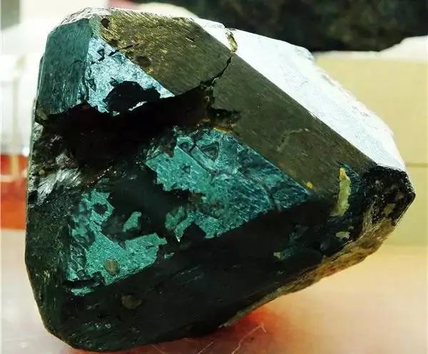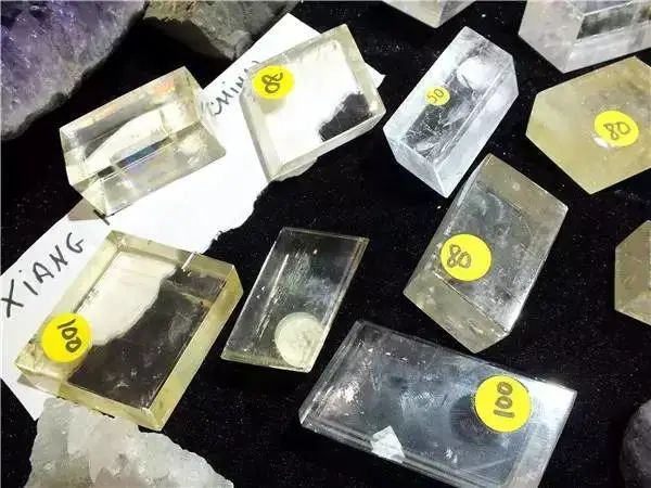 再比如冰洲石,它有三個(gè)方向的完全解理,通常會(huì)沿著解理面開裂形成一系列斜平行六面體,即非常完美的菱形塊體,這是它十分獨(dú)特的性質(zhì)。