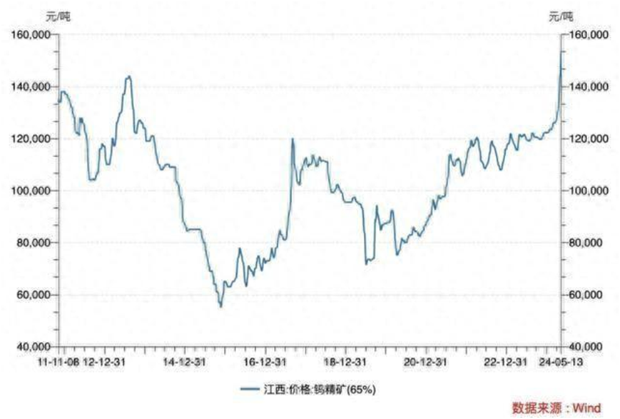 4月以來,被譽為“工業(yè)牙齒”的金屬鎢價持續(xù)走高。據(jù)Wind數(shù)據(jù)統(tǒng)計,5月13日,江西地區(qū)65%品位的鎢精礦均價達到了15.35萬元/噸,相比4月1日12.65萬元/噸的價格,上漲了21.34%,較年初上漲25.58%,創(chuàng)下了自2013年以來的新高。
