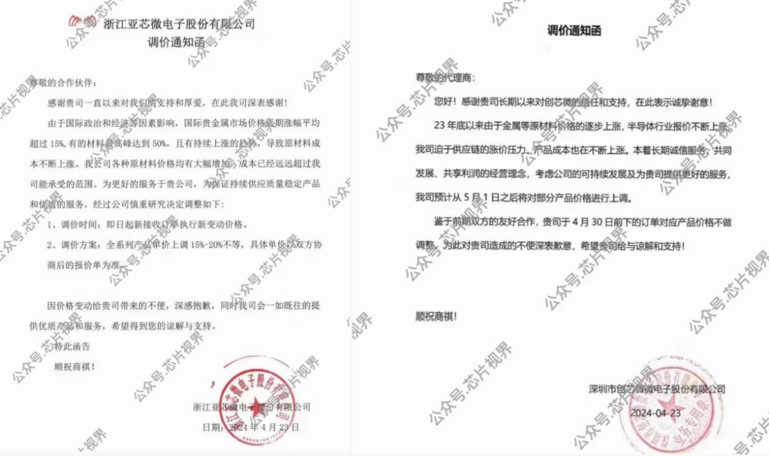 國(guó)際貴金屬市場(chǎng)價(jià)格持續(xù)上漲,使得芯片制造的原材料成本不斷攀升,芯片廠商面臨巨大的成本壓力,近期紛紛宣布漲價(jià)。浙江亞芯微電子表示,全系列產(chǎn)品單價(jià)上調(diào)15%-20%不等;深圳市創(chuàng)芯微電子表示,5月1日起調(diào)漲部分產(chǎn)品價(jià)格;南京市智凌芯表示,全線系列產(chǎn)品調(diào)漲;無(wú)錫華眾微電子表示,部分產(chǎn)品價(jià)格上調(diào),幅度為10-20%。