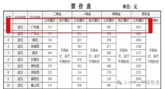 以武漢站至廣州南站的高鐵票價(jià)為例,二等座現(xiàn)價(jià)463.5元,一等座現(xiàn)價(jià)738.5元,商務(wù)座1458.5元。調(diào)價(jià)后的價(jià)格分別為:553元,885元,1935元,漲幅達(dá)19.31%、19.81%、32.67%。