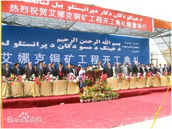 根據(jù)最終簽署的協(xié)議,艾娜克銅礦項目生產(chǎn)規(guī)模為年產(chǎn)精煉銅22萬噸(計劃擴大到年產(chǎn)30萬噸),項目建設(shè)期5年,開采期限30年。配套設(shè)施包括一個40萬千瓦的火電廠、一個水源地泵站和一個磷肥廠,以及學(xué)校、醫(yī)院、清真寺等公共服務(wù)設(shè)施,還計劃修建鋼廠和鐵路等。總投資將超過100億美元。